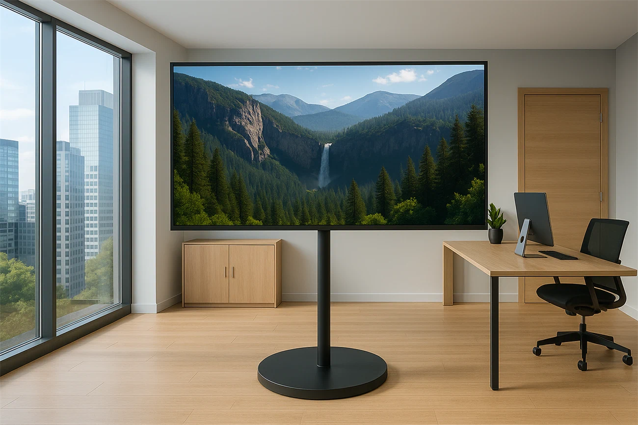 הוא מתאים למשרדים, אולמות כנסים, בתי ספר, תערוכות, חדרי הדרכה וחללי עבודה מודרניים, ומאפשר הזזה קלה ובטוחה של המסך לכל מקום.