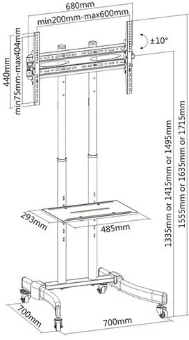 מעמד נייד עד 75 אינץ' עם כיוון גובה דגם IR65