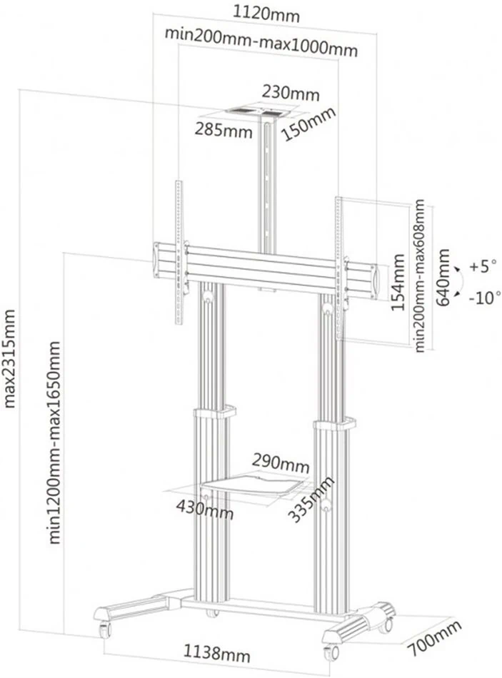 מתאים למסכים עד 100 אינץ (100 ק"ג) בעלי מפתח ברגים עד VESA 1000X600.