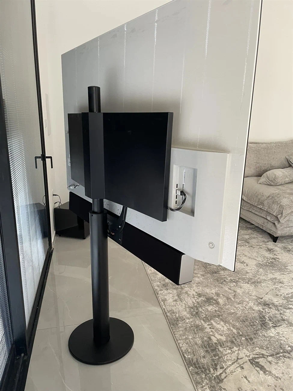עמוד טלויזיה רצפתי שחור עד 100 אינץ' עשוי נירוסטה בקוטר 100 מ"מ