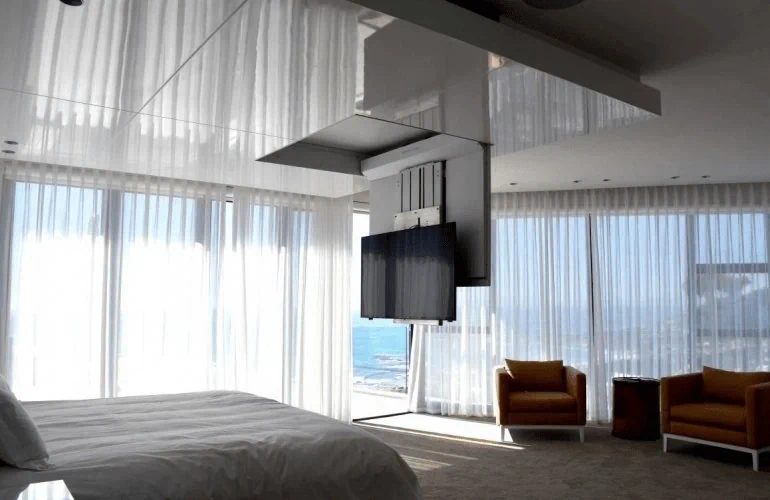 זרוע חשמלית סמויה בתקרה המאפשרת מהלך ירידה נוסף עם הפתיחה והגעה לגובה צפייה אופטימלי
