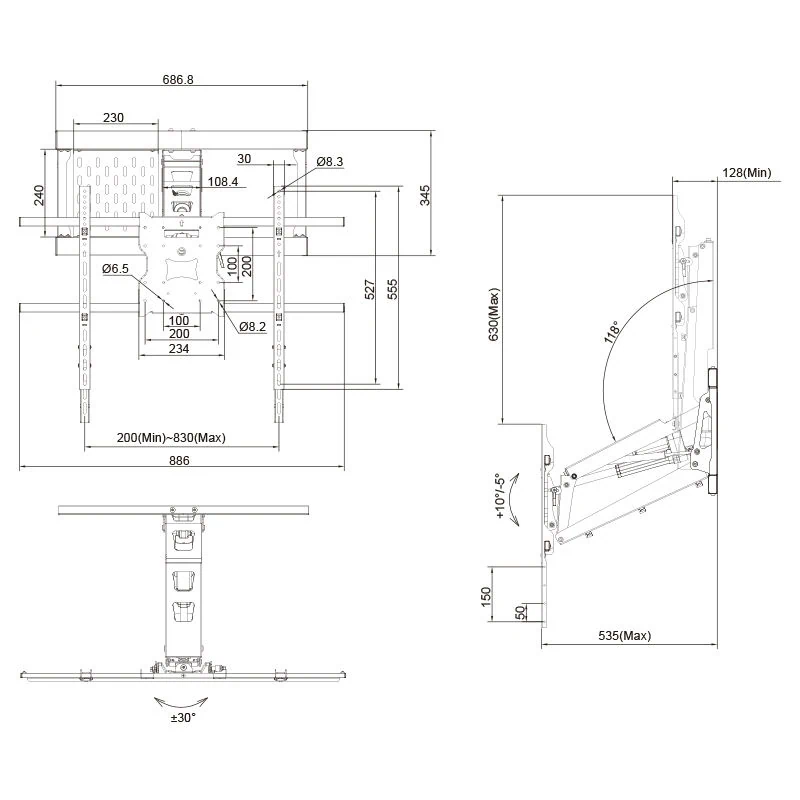 מתקן תלייה חשמלי הידראולי לטלוויזיה עם שלט – למסכי 42-80 אינץ'