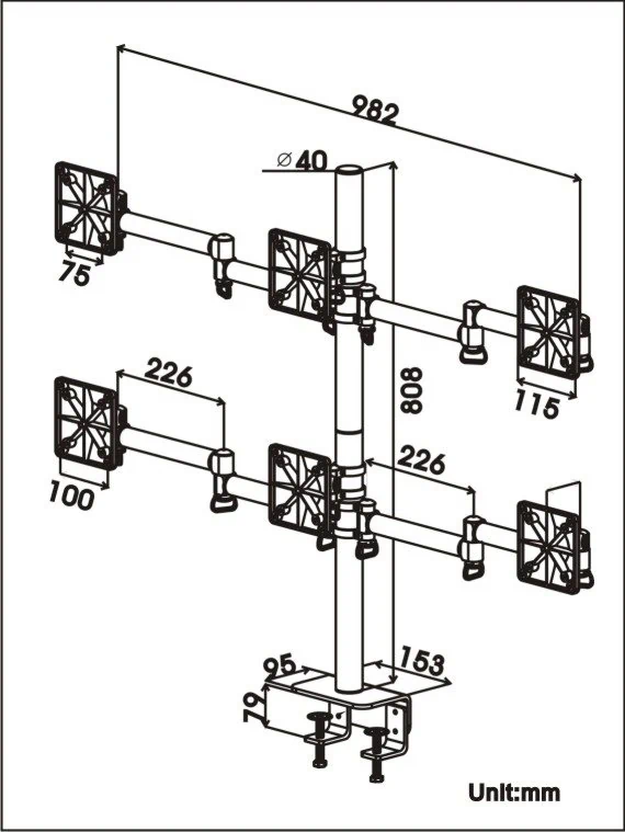 זרוע שולחנית לתליית עד 6 מסכים, קלה לתפעול ולהתקנה