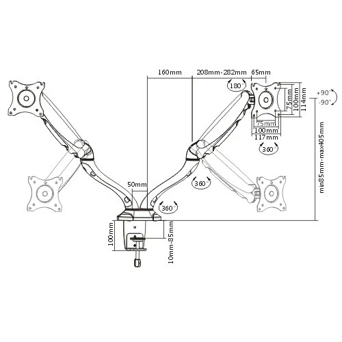 הזרוע מאפשר הנעה של המסך למטה ולמעלה בנגיעה בלבד, צידוד של 360 מעלות ואפשרות