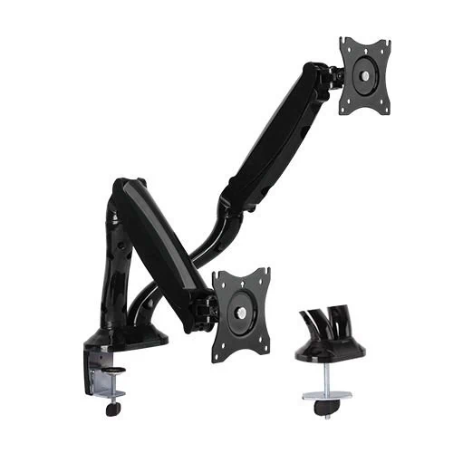 זרוע שולחנית הידראולית ארוכה ל 2 מסכי מחשב עם אפשרות התקנה על שולחן או באמצעות מלחציים בשולחן, מתאימה למסכים עד 27 אינץ' או 6 ק"ג!
