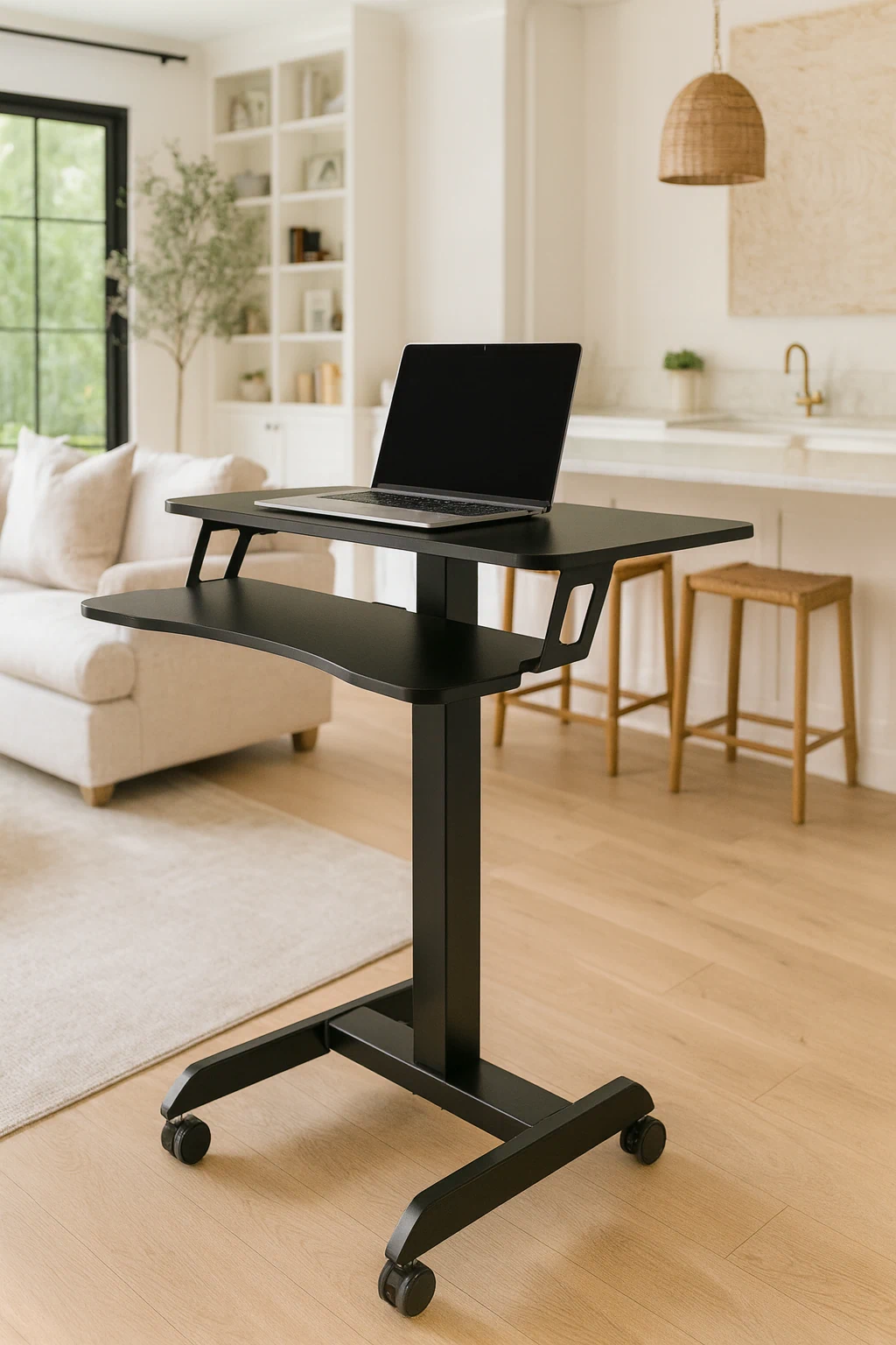עמדת עבודה ניידת מאפשרת לעבוד בצורה ארגונומית מכל מקום בבית.