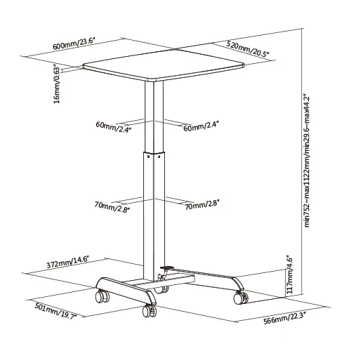 משטח עבודה רחב: 70×60 ס״מ, מתאים למסך מחשב, מקלדת, עכבר ואביזרים
