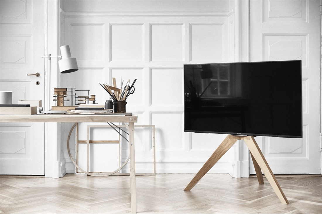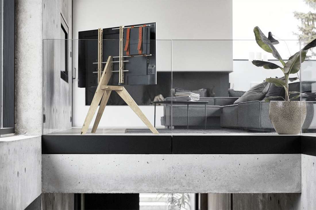 מעמד רצפתי מעוצב בגימור עץ למסכים עד 75 אינץ' דגם OPT 1