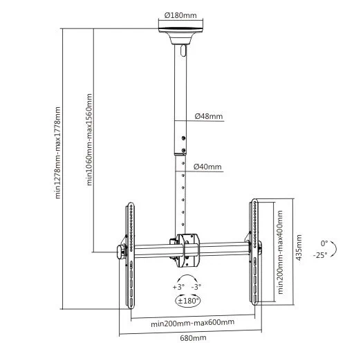 ✅ מעמד תלייה מהתקרה למסכים – דגם PLB-CE946-02L