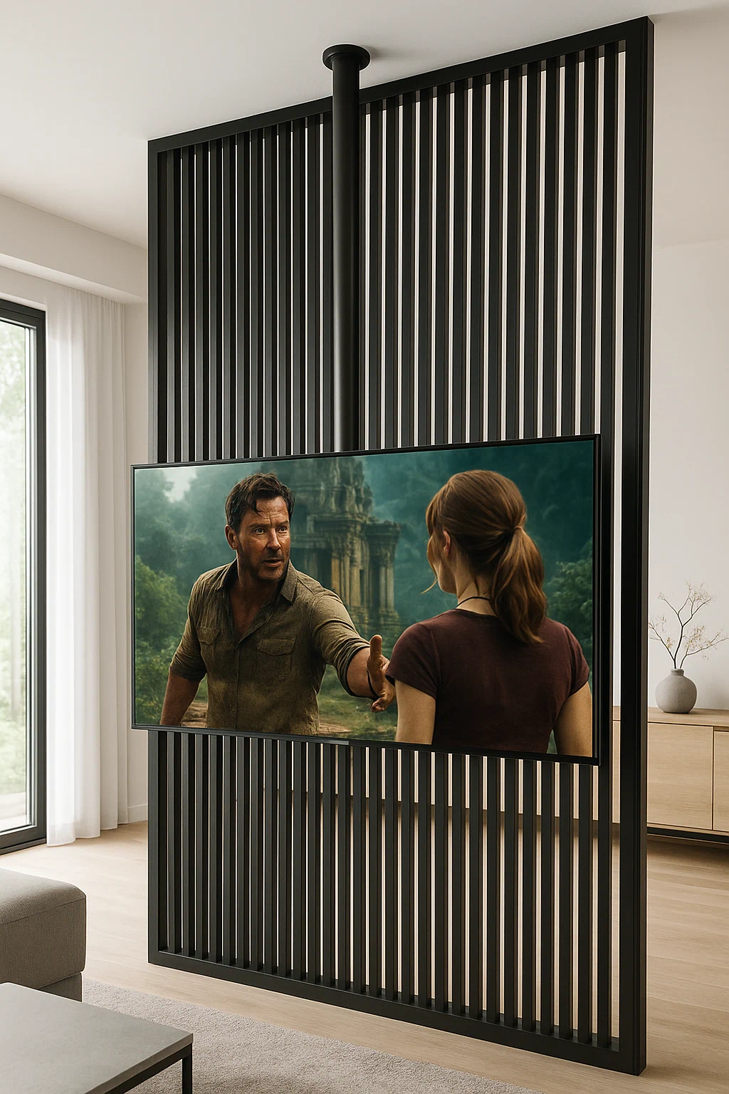 עמוד שחור לתקרת גבס למסכים עד 86 אינץ' TR86