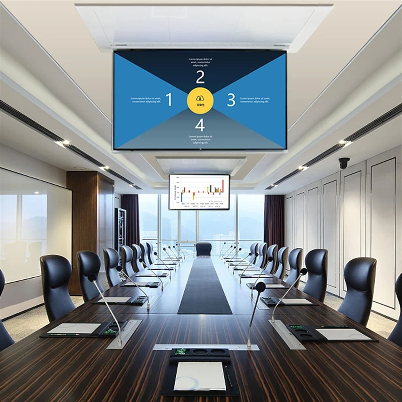זרוע חשמלית סמויה שנעלמת בתקרה בלחיצת כפתור למסך ענק של 100 אינץ'