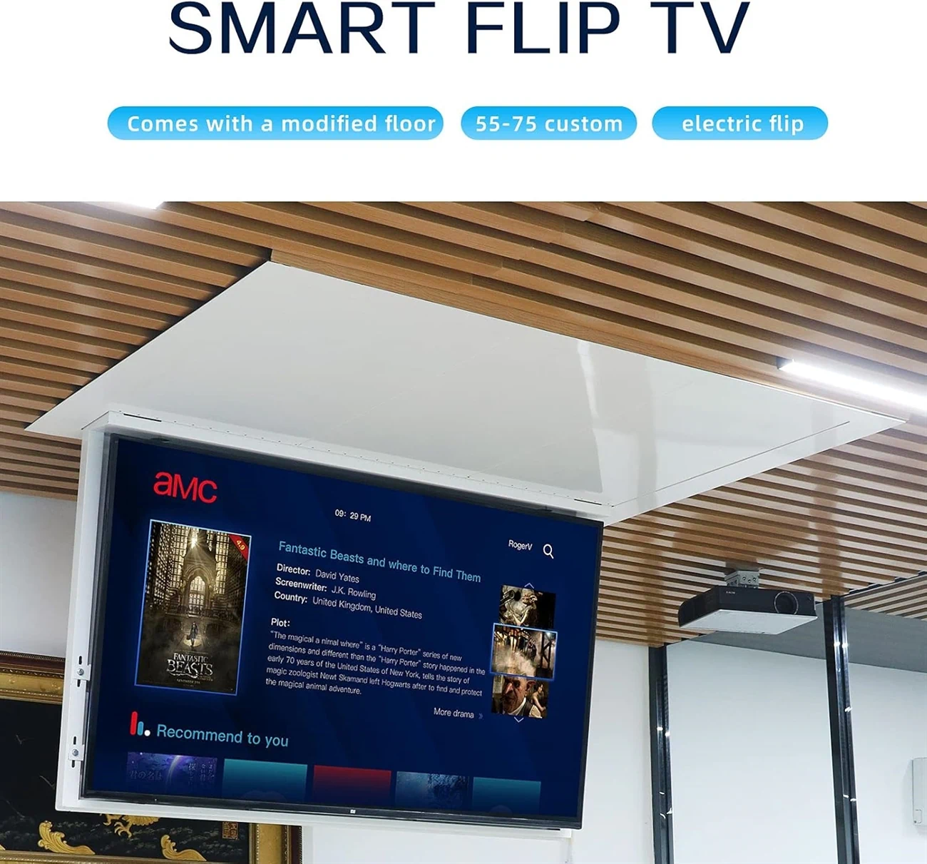 פתרון נפלא להסתרת הטלויזיה בתקרה לכל מסך עד 100 אינץ'