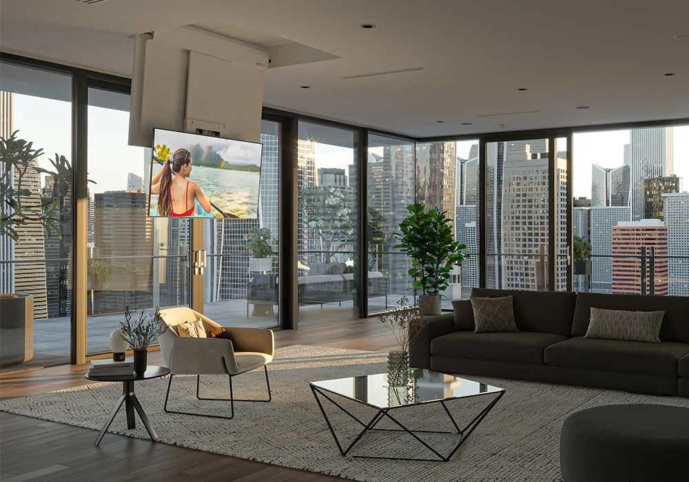 מעלית תקרה סמויה למסכי טלויזיה עד 77 אינץ' כולל מהלך ירידה הנחשבת למעלית הטובה בעולם