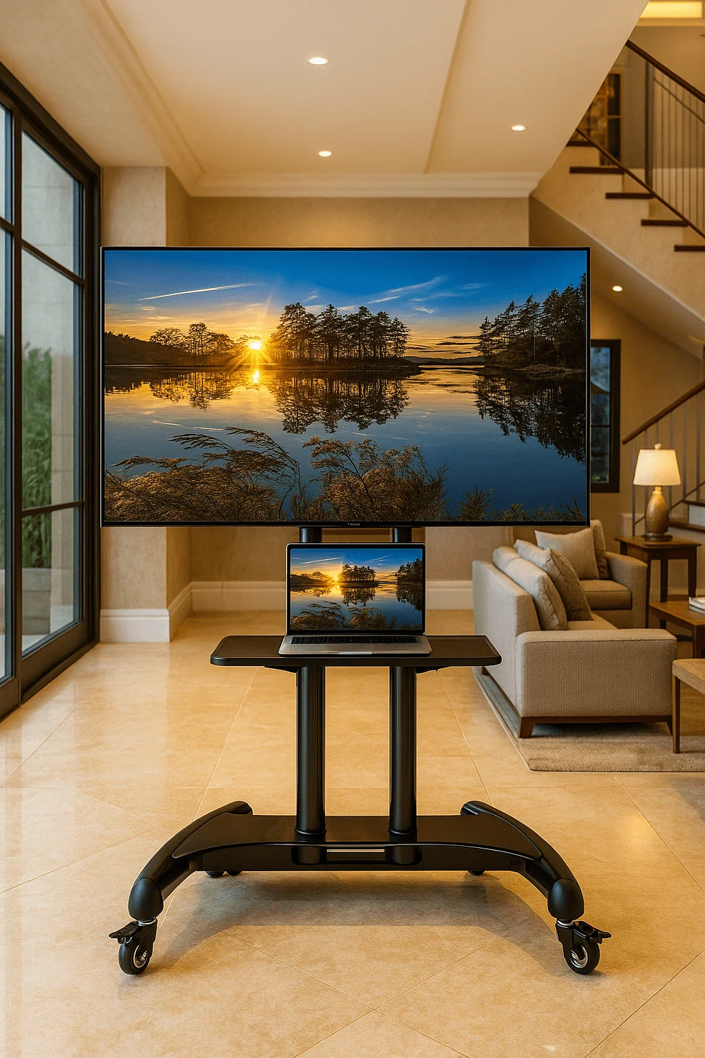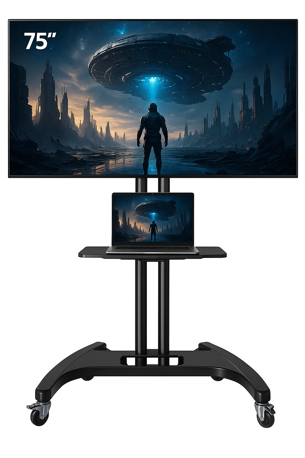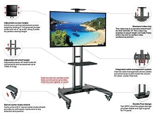 מתקן נייד למסכים גדולים, מיועד למסכים מגודל 32" עד 75" מעולה מעוצב ואיכותי