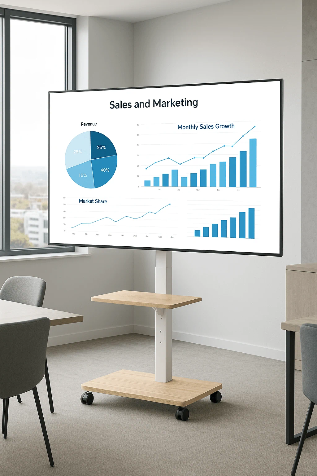 פתרון מושלם למסכים גדולים – עם ניידות, יציבות ומראה אלגנטי שמתאים לכל סגנון עיצוב.
