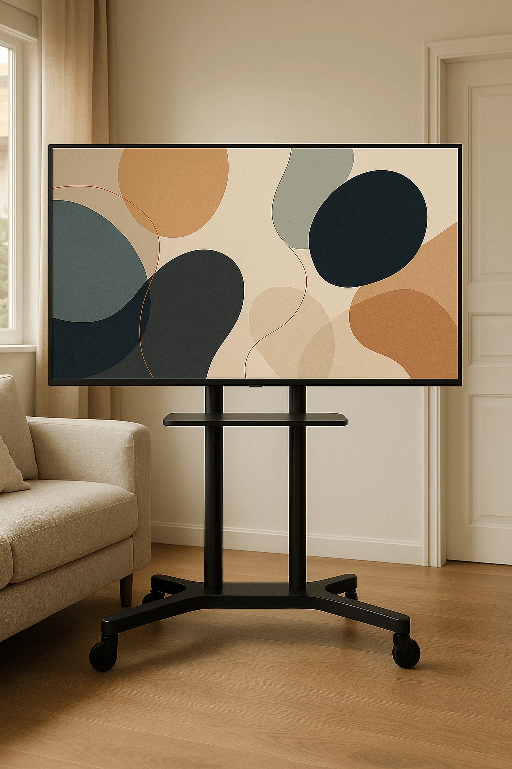 עגלת טלוויזיה איכותית מבית Audio Line, מסדרת מתקני הפרימיום, מותאמת למסכים גדולים עד 75 אינץ’. שילוב מושלם של חוזק, יציבות וניידות מלאה. פתרון אידאלי לחדרי ישיבות, כיתות לימוד, אולמות תצוגה וסלונים מודרניים.