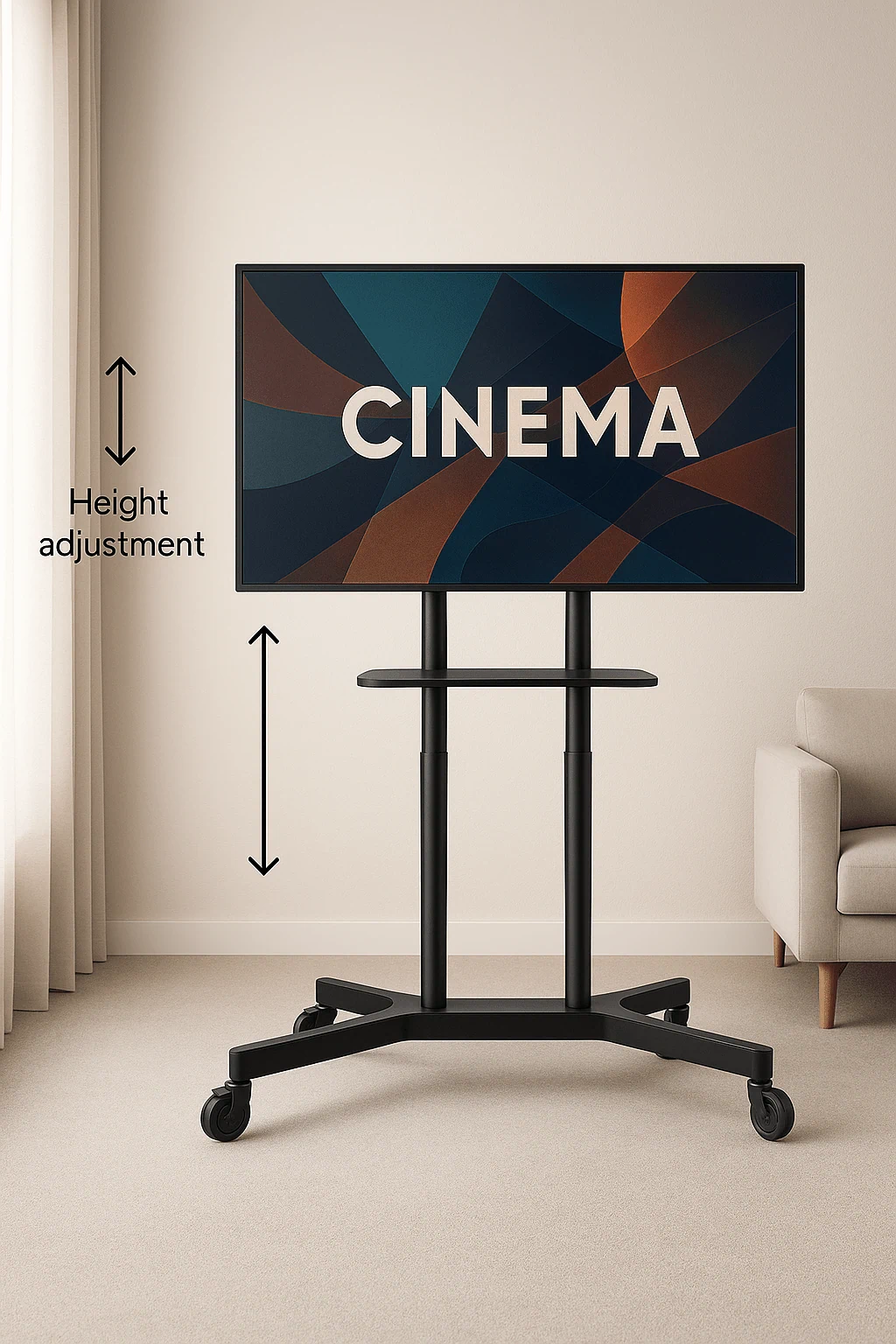 נבנתה ממתכת מחוזקת, וכוללת מערכת גלגלים שקטה עם נעילה בטיחותית לתנועה חלקה ומבוקרת. העגלה מאפשרת התאמה מדויקת של גובה וצפייה בזווית אופטימלית, תוך תמיכה מלאה בכל סטנדרטי VESA הנפוצים.