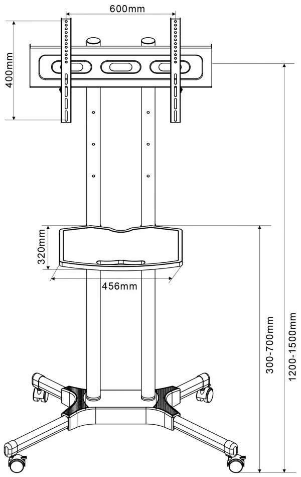 עגלת טלוויזיה, מתקן לטלוויזיה עד 75, עגלת מסך ניידת, מתקן טלוויזיה על גלגלים, עגלה למסך גדול, Audio Line, DWD1491, מתקן TV מקצועי, עגלת תצוגה למסך, מתקן למסך למש