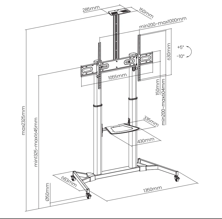 עגלה ניידת למסכים גדולים עד 100״ דגם TTL17-610TW