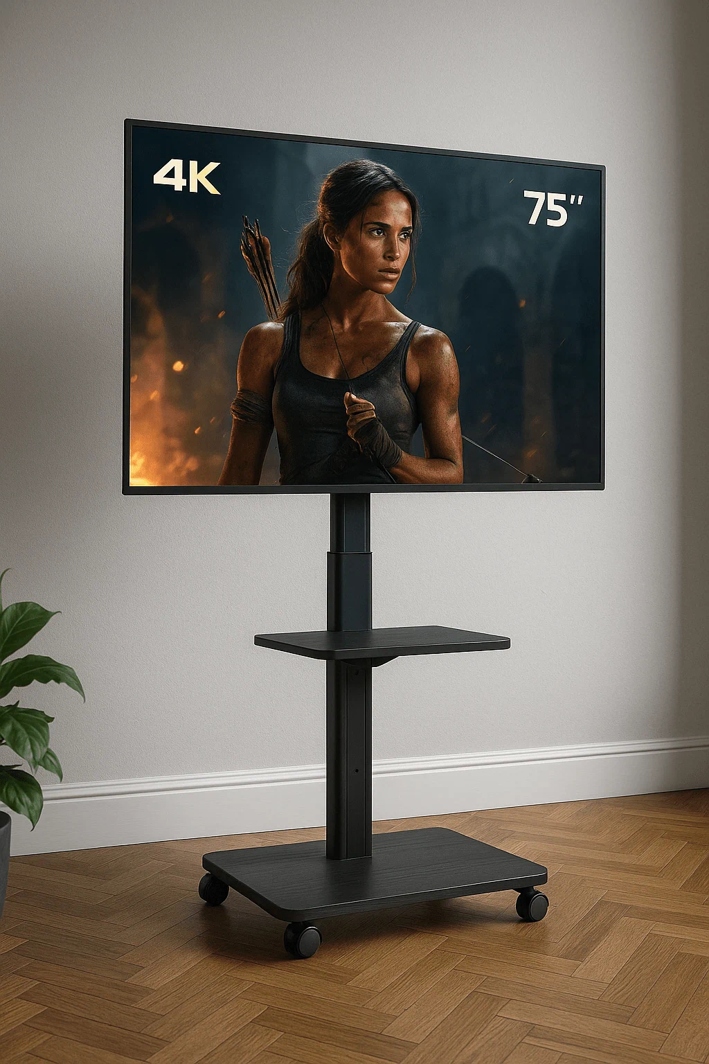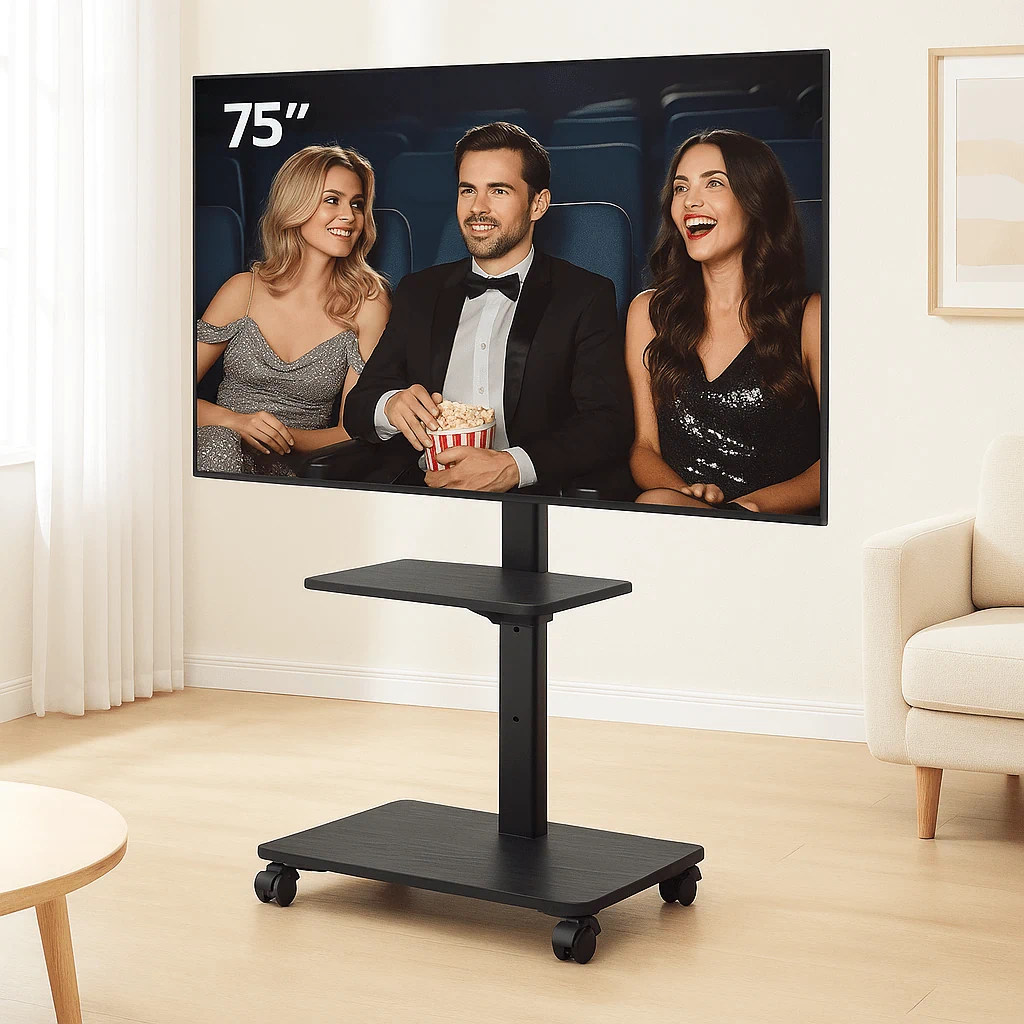 🖥️ מעמד רצפתי מעוצב עם גלגלים למסכים עד “75 שחור מט