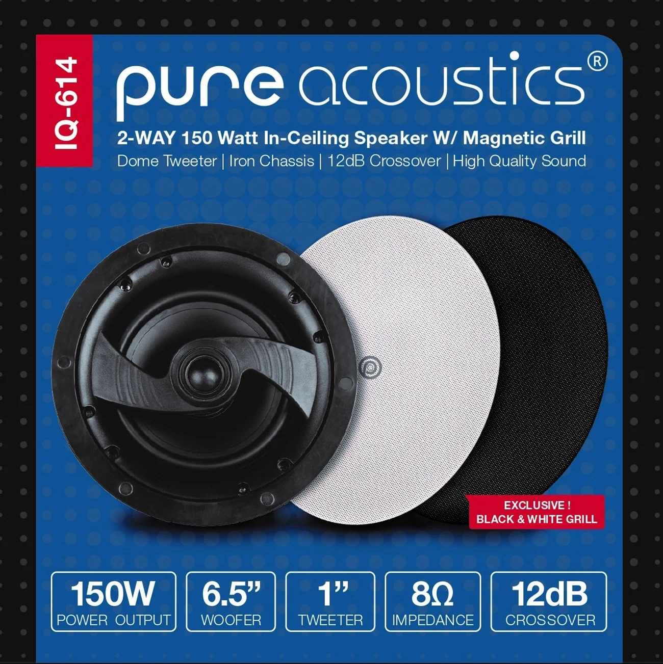 רמקולים שקועים, רמקול שקוע בתקרה, PURE ACOUSTICS IQ614, רמקולים לקולנוע ביתי, רמקולים איכותיים לסלון, רמקולים עגולים, רמקול שקוע מקצועי.