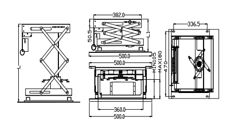מעלית חשמלית הנפתחת לגובה הקרנה הרצוי באמצעות שלט אלחוטי ונסתרת בתקרה 460