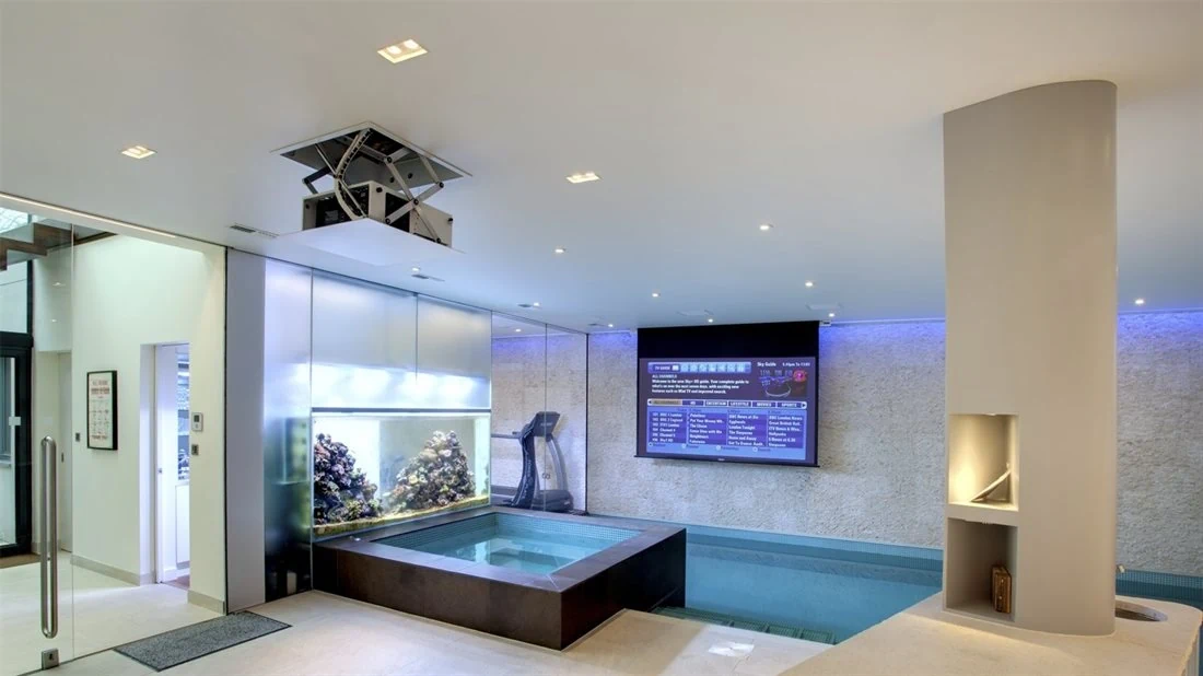 אוטומאטית בגובה שנקבע מראש, בתום הצפיה, לחיצה על השלט תחזיר את המקרן לתקרה והיא תוסתר בגובה אחיד עם התקרה.