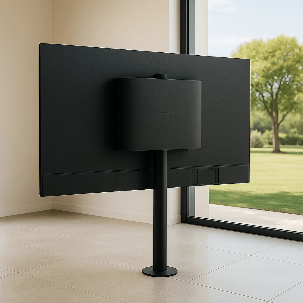 עמוד רצפתי לטלוויזיה עם תושבת תת רצפתית – יציבות, עיצוב ופתרון מושלם