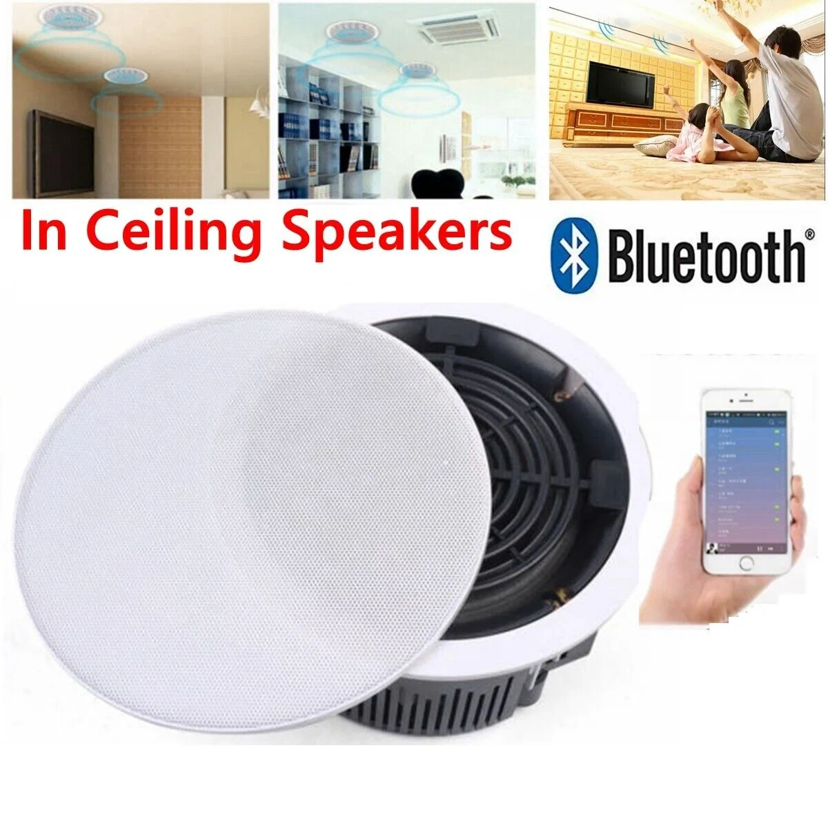סט רמקולים שקועים 6.5 אינץ' מוגברים BLUETOOTH