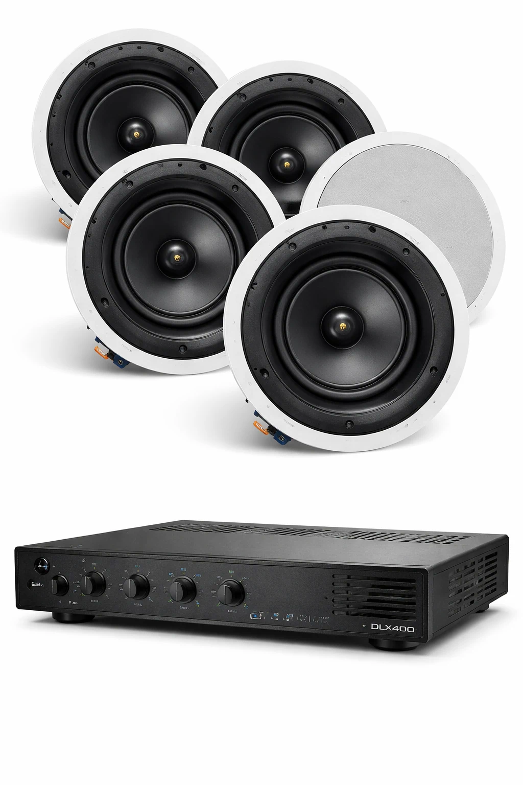 מערכת מוזיקה לעסק, רמקולים שקועים לעסק, Monitor Audio PRO-80, מגבר 4 ערוצים DLX400, מערכת סאונד למסעדה, מערכת כריזה ומוזיקה לחנות, רמקולי תקרה 8 אינץ, מערכת שמע למשרד, מערכת מוזיקת רקע לעסק, התקנת רמקולים שקועים.