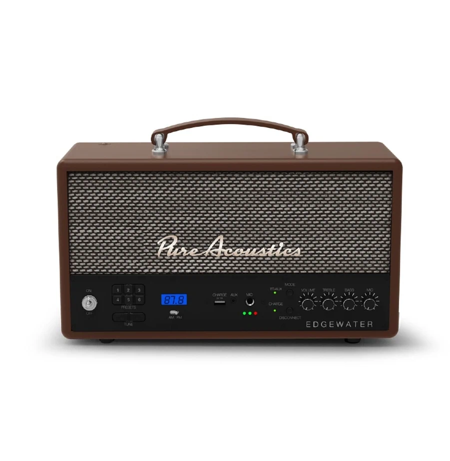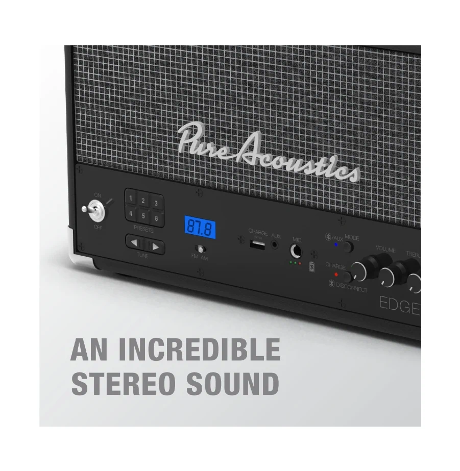 סטריאו 2.0 עם בס ריפלקס, בלוטוס 4.0 בגימור עור עוצמתי - 100W של סאונד Hi-Fi עם מגבר Class D ו- DSP מעבד צליל דיגיטלי בלוטוס 4.0 - להזרמת מוזיקה באופן אלחוטי ישירות מאייפון, סמארטפון, טאבלט ועוד כניסת Audio -ב3.5 מ"מ לחיבור ישיר של סמארטפון, טאבלט ונגנים רדיו AM/FM - דיגיטלי מובנה כולל זיכרון פנימי לשמירת 6 תחנות מועדפות כניסת מיקרופון - 6.3 מ"מ לחיבור מיקרופון חוטי איכות סאונד - בוררי שליטה על טרבל ובס לכיוון סאונד שקע Out USB - מאפשר הוצאת מתח טעינה 5V/1A, משמש כסוללת גיבוי סוללת ליתיום חזקה - 7.4V/4400mAh המאפשרת 12 שעות ניגון מד סוללה – 3 נוריות חיווי שמראות לך מצב סוללה בכל זמן נתון כבל מסולסל - כבל AUX יוקרתי עם פלג זהב באורך 3 מטר גימור עור שחור/ חום – תיבת הרמקול עטופה בגימור עור יוקרתי שמעניק שילוב בין מראה רטרו למודרני ידית נשיאה - בגימור עור יוקרתי לניידות קלה נוחה ובטיחותית