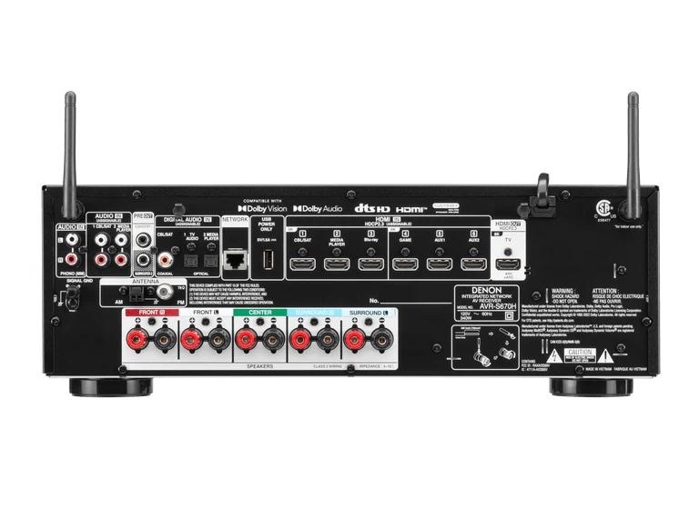 - קישוריות מתקדמת: ה-AVR-S670H מצויד ב-6 כניסות HDMI עם תמיכה ב-HDCP 2.3, המאפשרות חיבור של מגוון מכשירים חכמים כגון קונסולות משחקים, סטרימרים וממירי טלוויזיה. בנוסף, הרסיבר תומך ב-eARC להעברת אודיו מתקדם באיכות גבוהה.