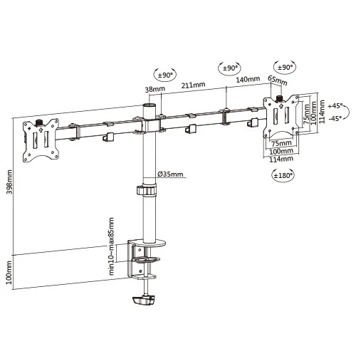 זרוע שולחנית, דו מפרקית ל 2 מסכי מחשב עד "32 T11