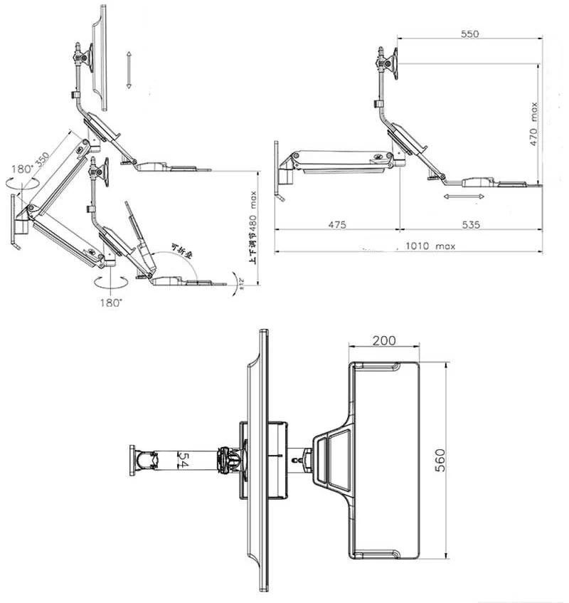 זרוע ישיבה / עמידה ארגונומית מיועדת לתלייה על קיר למסך מחשב, מקלדת ועכבר MB 32 North Bayon
