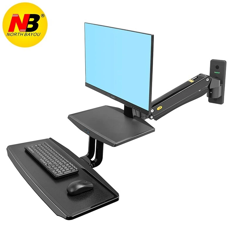 עמדת עבודה תלויה על קיר, MB-32, NB North Bayou, זרוע למסך מחשב עם מקלדת, מתקן קיר למסך מחשב, עמדת מחשב ארגונומית, עמדת מחשב לקיר, זרוע VESA 100x100, עמדת עבודה לעמידה, פתרון עבודה קומפקטי למשרד.