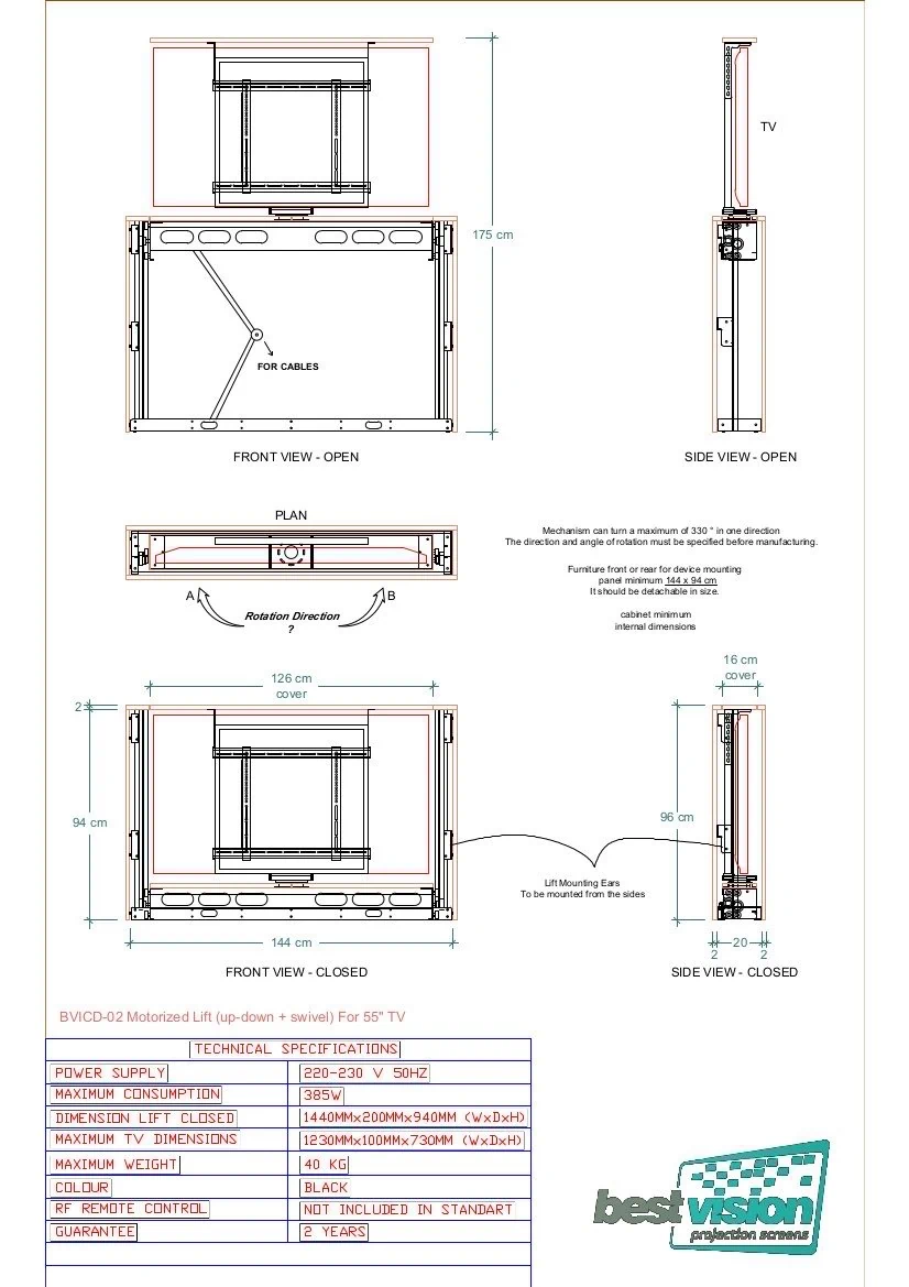 מעלית חשמלית מסתובבת מרהיט למסך עד 55 אינץ BESTVISION BVPUR-55