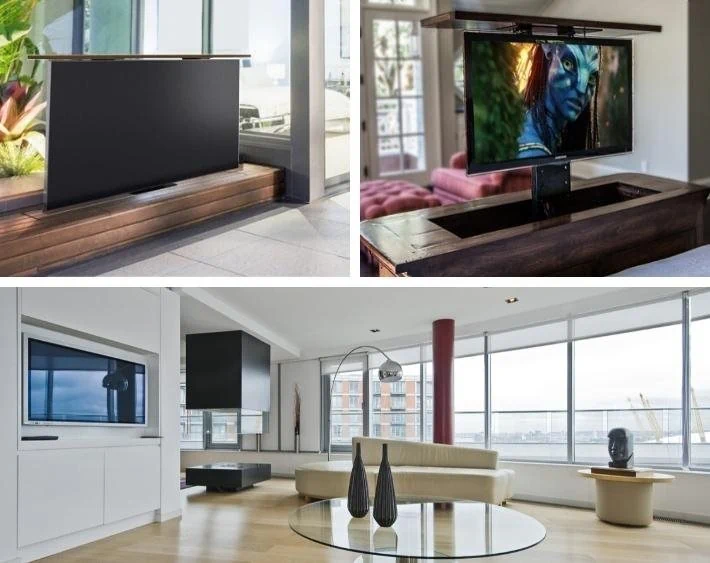 מיועדת להתקנה בתוך רהיט או מזנון מתאים , להסתרת המסך באופן דקורטיבי שמשדרג את הבית