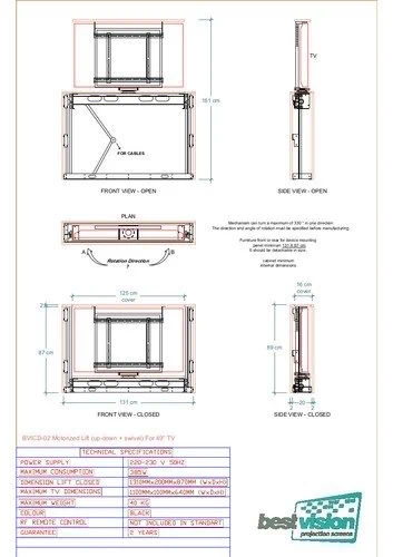 מעלית חשמלית מסתובבת מרהיט למסך עד 50 אינץ BESTVISION BVPUR-50
