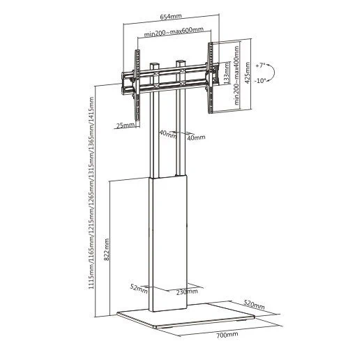 גובה מינימלי(למרכז מסך)111 ס"מ, מקסימלי: 141 ס"מ