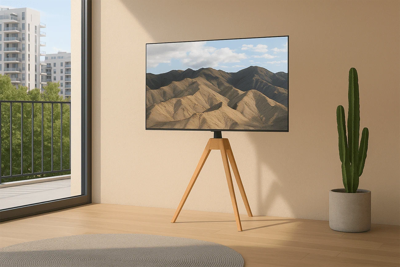 המעמד FS35 הוא הבחירה המושלמת למי שמחפש לשלב בין עיצוב קלאסי אלגנטי לבין פתרון פונקציונלי חכם לתצוגת מסכים גדולים.