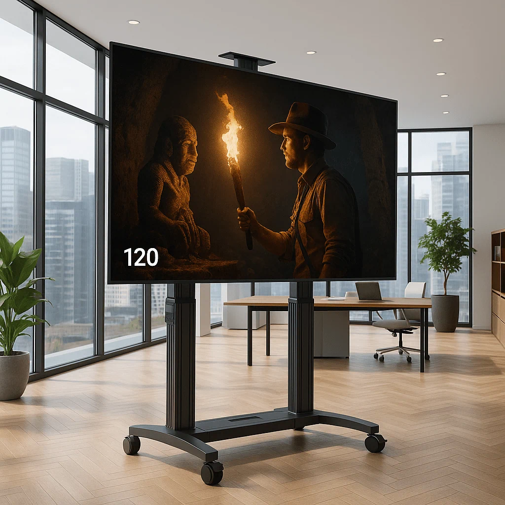 מעמד נייד עם מהלך טלסקופי חשמלי למסכי ענק