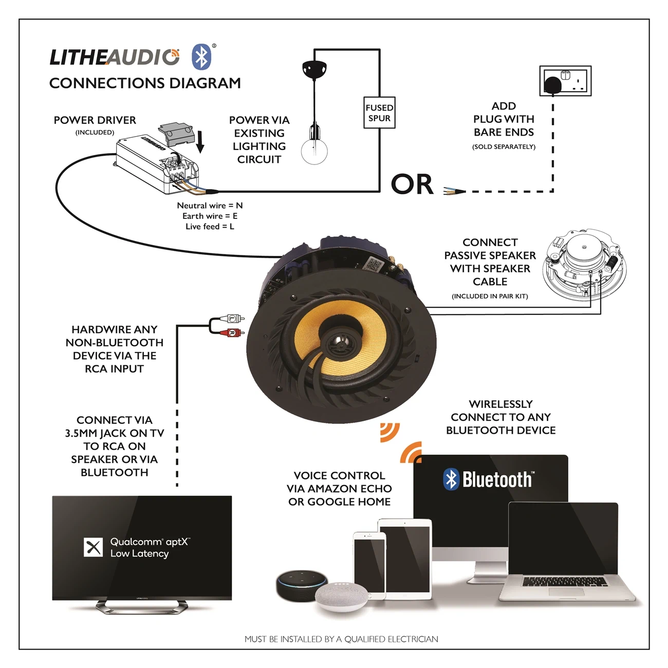 רמקול שקוע אלחוטי מוגבר LITHE AUDIO BLUETOOTH