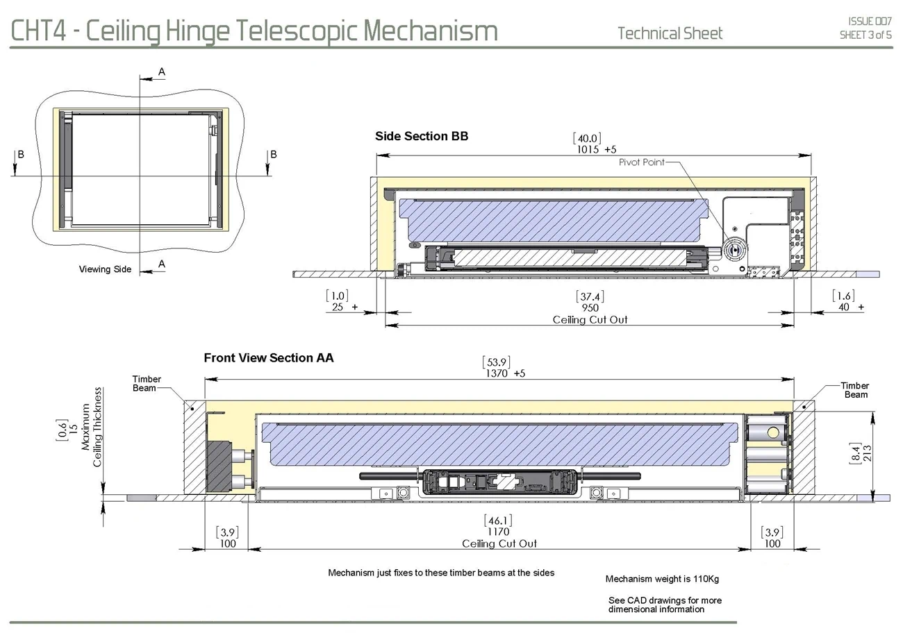זרוע חשמלית סמויה בתקרה עם מהלך ירידה נוסף!