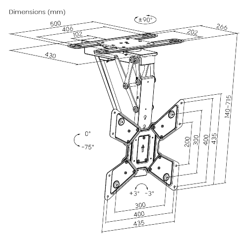 זרוע תקרה חשמלית עד 65 עם צידוד 90 מעלות