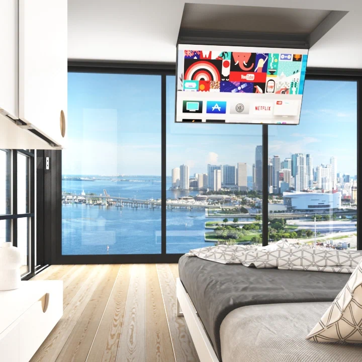 ✅ חיסכון מקסימלי במקום – הטלוויזיה נעלמת אל תוך התקרה.
