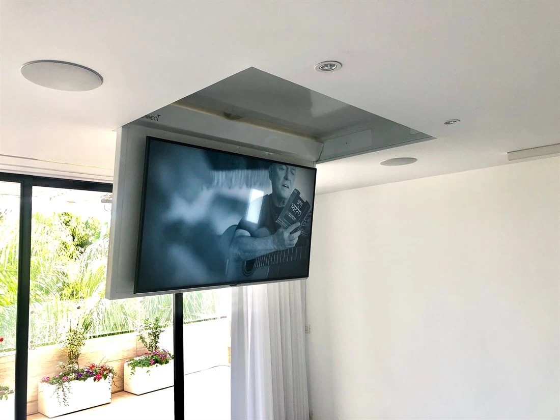 זרוע חשמלית סמויה לטלוויזיה בתקרה – טכנולוגיה אלגנטית שמשנה את כללי המשחק